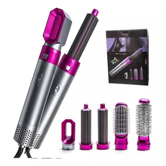 Este cepillo 5 en 1 es todo lo que necesitas. Con cinco accesorios de cepillo intercambiables, puedes alisar, rizar y lograr el secado con el estilo perfecto. Diseñado para ajustarse a diferentes longitudes de cabello, te brinda la libertad de crear distintos looks con un solo dispositivo. ¡Es la solución ideal para cualquier ocasión!